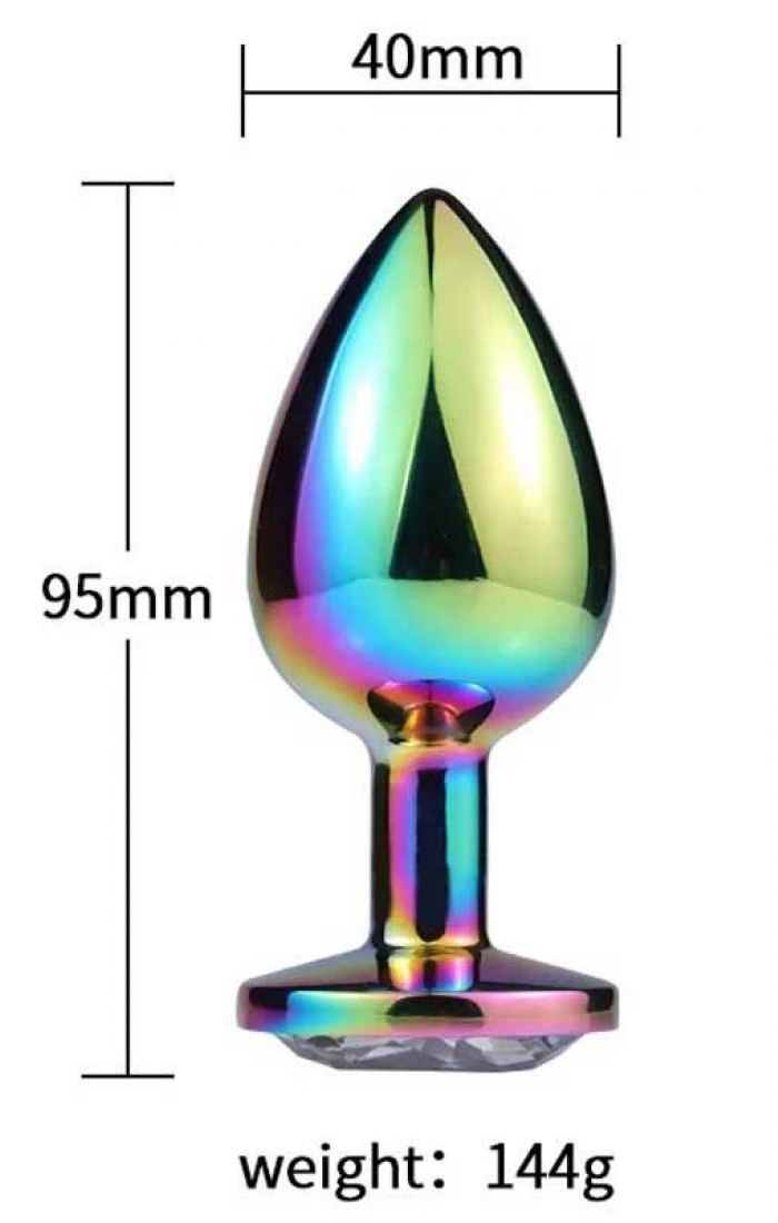 NOXXX Parlak Çok Renkli Büyük Boy Taşlı Çelik Anal Plug Alt kısmı mücevher renkli kristal taşla süslü, 9.5 cm uzunluğunda ve 4 cm genişliğinde çok renkli alacalı çelik anal plug. Kaliteli paslanmaz çelik ve renkli kristal taşlardan üretilmişitir. Plug taşları karışık renktedir. Uzunluk: 9.5 cm Çap: 4 cm Kullanılabilir Uzunluk: 8.5 cm Ağırlık: 170 gr.