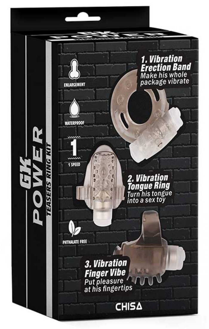 GK Power Dil, Parmak ve Penis İçin Titreşimli Halka Seti 3'lü Chisa GK Power penis halkası ve setleri bir çok farklı amaç için üretilmektedir ve sevilerek tercih edilen ürünlerdir. Çok amaçlı bu set içerisinde dil, parmak ve penis halkaları mevcuttur. Yumuşak ve tırtıklı yapısı sayesinden kolay ve konforlu kullanım sağladığı gibi daha fazla uyarı da verir. Esnek yapısı sayesinde ise tüm kullanıcılara uygundur. Ayrıca pilleri değiştirebilir olduğundan piyasadaki benzeri halkalar gibi tek kullanım değil, tekrar tekrar kullanıma uygundur. Her biri 3 adet LR44 pil kullanır. Ürünlerin içinde pil vardır..