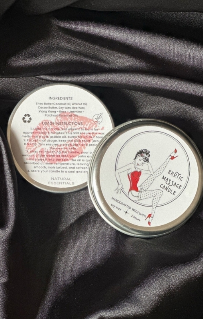Erotik Masaj Mumu – Tutkunun Sıvı Hali Duyularını Ateşle, Tutkuyu Besle veya Duyularınızı Uyandırın, Tutkuyu Alevlendirin Bu özel masaj mumu, çiftler arasındaki bağı güçlendirmek ve derin bir duyusal deneyim sunmak için tasarlandı. Yakıldığında vücut sıcaklığına uygun bir masaj yağına dönüşerek cildi rahatlatır, şehvetli bir dokunuşla teninizi sarmalar. %100 doğal ve vegan içeriğiyle cildinize saf bir keyif sunarken, afrodizyak etkisiyle duygularınızı ateşler. İçerik Bilgisi: • Soya Wax: Hafif, doğal ve cildi pürüzsüzleştiren bitkisel baz. • Shea Butter: Cildi yoğun şekilde nemlendirir ve kadifemsi bir doku sağlar. • Hindistancevizi Yağı: Cildi besleyerek ipeksi bir his kazandırır. • Ceviz Yağı: Elastikiyeti artırır, hassas ciltlerde bile rahatlıkla kullanılabilir. • Kakao Yağı: Doğal bir sıcaklık hissi verir ve pürüzsüz bir ten sunar. • Ylang Ylang: Güçlü afrodizyak etkisiyle bilinen egzotik çiçek kokusu, tutkuyu canlandırır. • Vanilya: Sıcak ve baştan çıkarıcı aromasıyla duygusal bağları güçlendirir ve huzur verir. Kullanım Talimatı: Mumu yakın, eriyen mum sıvılaştığında fitili söndürün ve birkaç saniye bekleyin. Cildinizde hafifçe gezdirerek masaj yapın. Cildinizi saran bu sıcak dokunuş, derin bir rahatlama ve şehvetli bir deneyim sunar. Duyularınızın doruğa ulaştığı bir deneyim yaşayın. Bu özel masaj mumu ile tutkunuzu özgür bırakın. Emilimi yüksek olan kremsi ürünümüz ciltte yapışkanlık hissi bırakmaz, tamamiyle organiktir. Serin ve kuru yerde saklayınız..
