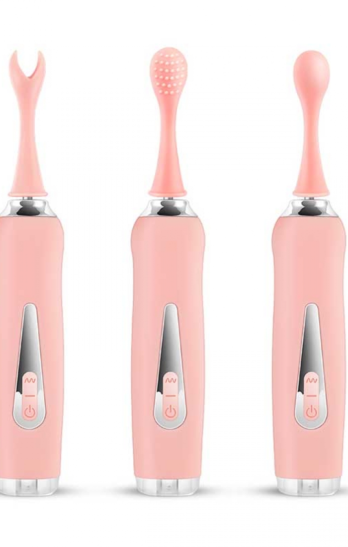 Üç Başlıklı Değiştirilebilir Vibratör Pembe 18*3.4 cm boyutlarındadır. 3 farklı hız ve 7 farklı titreşim mdou vardır. USB kablo ile şarj edilir..