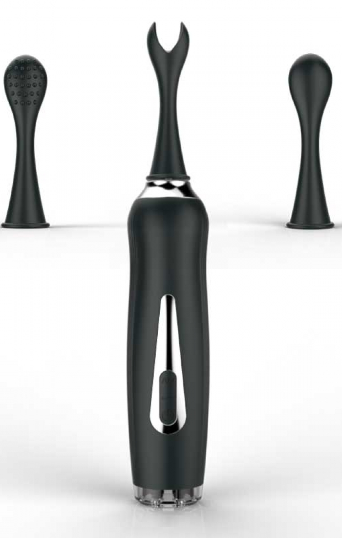 Üç Başlıklı Değiştirilebilir Vibratör Siyah 18*3.4 cm boyutlarındadır. 3 farklı hız ve 7 farklı titreşim mdou vardır. USB kablo ile şarj edilir..