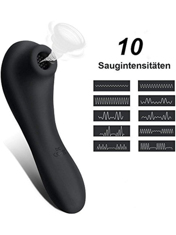 Siyah Klitoral emiş vibratörü 10 farklı titreşim modu.
