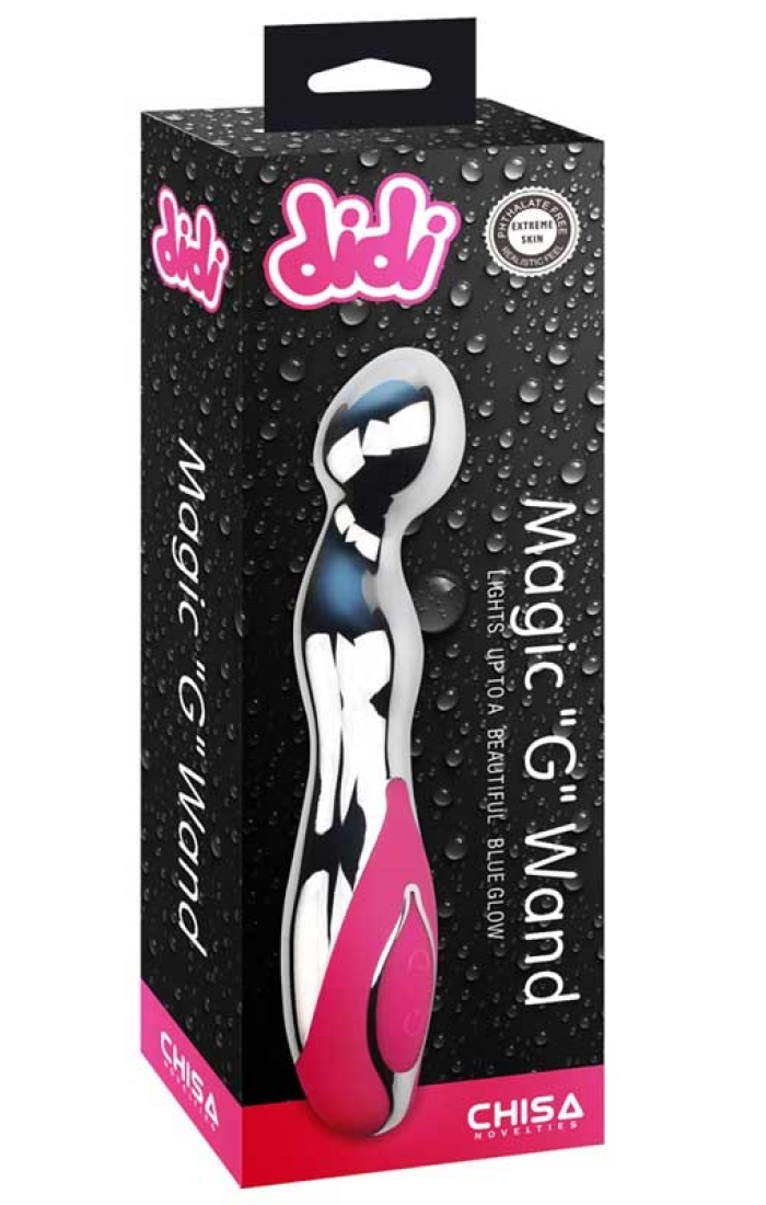 Chisa Didi Magic G Wand Şarjlı Vibratör Kullanım sırasında parlayan mavi ışıkları vardır. 10 farklı titreşim frekansına sahiptir. USB kablo ile şarj edilebilir ve pile ihtiyacı yoktur. G bölgesine daha iyi etkilemek için kavisli yapıdadır. Cilt dostu medikal silikon ve plastik malzemelerden üretilmiştir. Banyoda kullanılabilir ve yıkanabilir. 24 cm * 8.2 cm * 4.6 cm boyutlarındadır. 209 gr ağırlığındadır..
