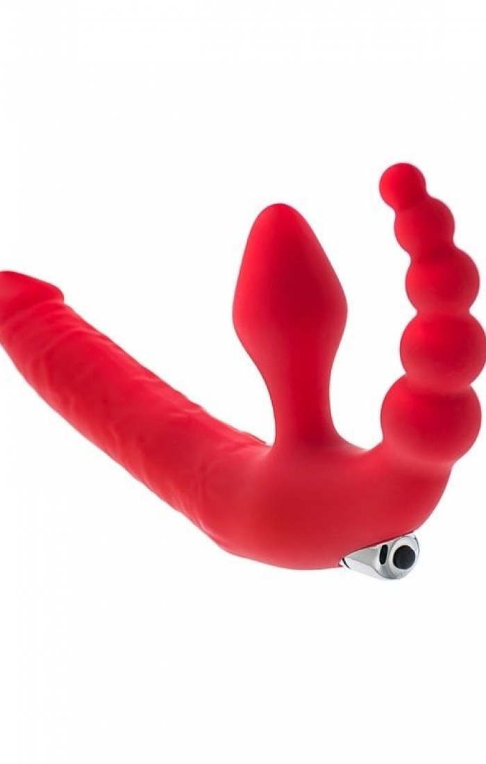 Red Çift Taraflı Vibratör eş zamanlı vajinal ve anal stimülasyondan zevk verir. Ürünün toplam uzunluğu 35 cm, çapı 3 cm. Anal vibratör uzunluğu 7 cm çapı 3,5 cm'dir. Tek kademeli titreşim moduna sahiptir. 3 adet LR41 pil ile çalışır..
