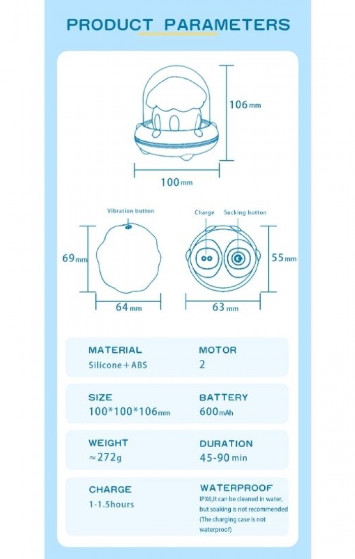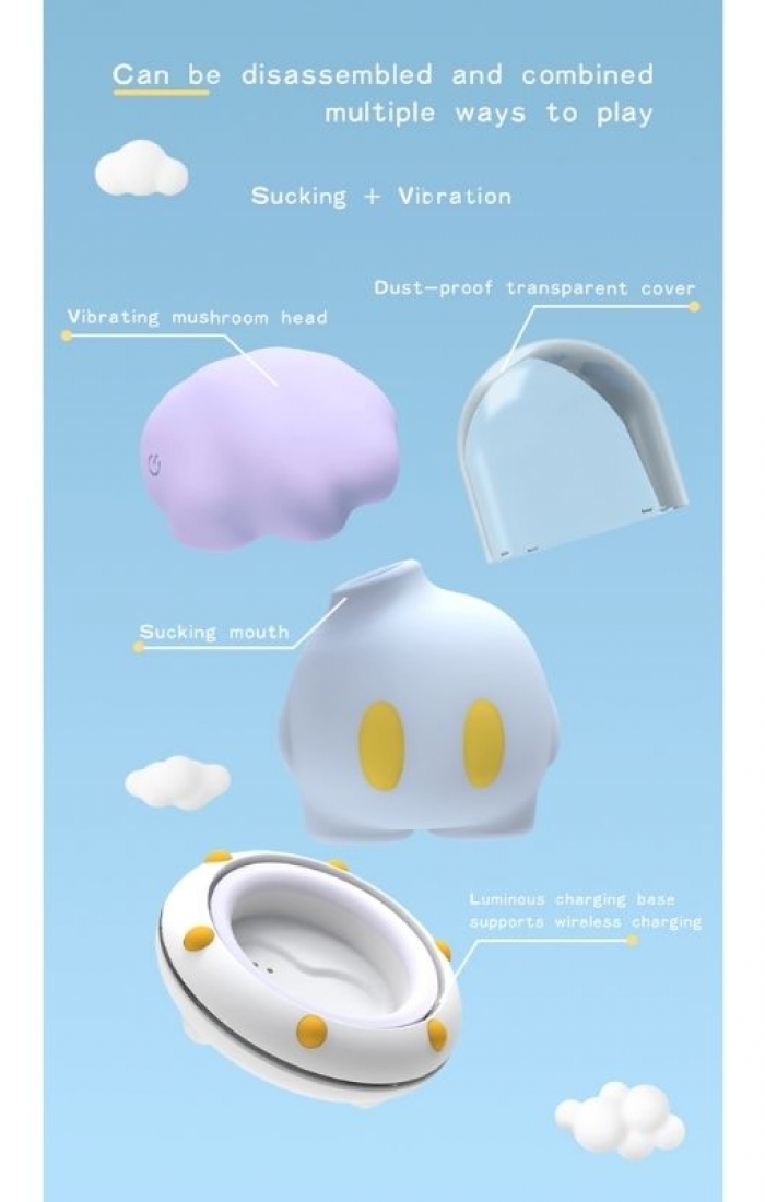 Üçü Bir Arada Fonksiyon: Bulut Şeklinde Vibratör: Farklı titreşim seviyeleri sunarak her kullanımda yeni bir deneyim sağlar. Emiş Stimülatörü: 6 farklı emiş modu ile hassas ve kişiye özel bir uyarım sunar. Kablosuz Şarj Ünitesi: Modern tasarımıyla sabit ve verimli kablosuz şarj imkanı sağlar. * Toz Koruyucu Kapak: Şeffaf kapak, cihazı temiz ve hijyenik tutarak toz birikimini önler. * Gece Lambası Fonksiyonu: Üç farklı ışık rengi (sıcak beyaz, yumuşak sarı ve rahatlatıcı mavi) sunarak yatak odanızda şık bir aydınlatma sağlar ve ürünün yetişkin oyuncağı olduğu anlaşılmadan gizlilikle kullanılmasını mümkün kılar. * Su Geçirmez Özellik: IPX7 su geçirmezlik derecesi sayesinde banyo ve duşta güvenle kullanılabilir ve kolayca temizlenebilir. * Çeşitli Modlar ve Oyun Kombinasyonları: 12 titreşim modu ve 6 emiş modu ile farklı kombinasyonlar oluşturularak kişiye özel deneyimler sunar. Yeni başlayanlar ve çiftler için idealdir. Ürün Teknik Bilgileri: * Renk Seçenekleri: Mor, Turuncu, Mavi * Mod Ayarları: 12 titreşim modu + 6 emiş modu * Şarj Yöntemi: Kablosuz şarj tabanı * Malzeme: Yüksek kaliteli medikal silikon (güvenli, konforlu ve temizlemesi kolay) * Su Geçirmezlik: IPX7 * Ekstra Özellikler: Toz koruyucu kapak, gece lambası fonksiyonu Kullanım Alanları: * Kadınların kişisel kullanımı için idealdir. * Çiftlerin beraber keşfedebileceği eğlenceli bir oyuncaktır. * Gece lambası fonksiyonu sayesinde dikkat çekmeden ev dekorasyonuna uyum sağlar. Kullanım Talimatları: * Kullanmadan önce tam olarak şarj edildiğinden emin olun ve tercih ettiğiniz modu seçin. * Kullanım sonrası ılık su ve nazik bir temizleyici ile temizleyip kurulayın. * Saklarken hijyenik kalmasını sağlamak için toz koruyucu kapağını kullanın..